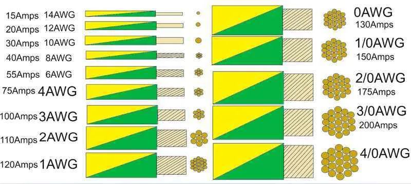 Важная особенность: система «перевёрнутая». Чем меньше число AWG — тем толще провод. Например: