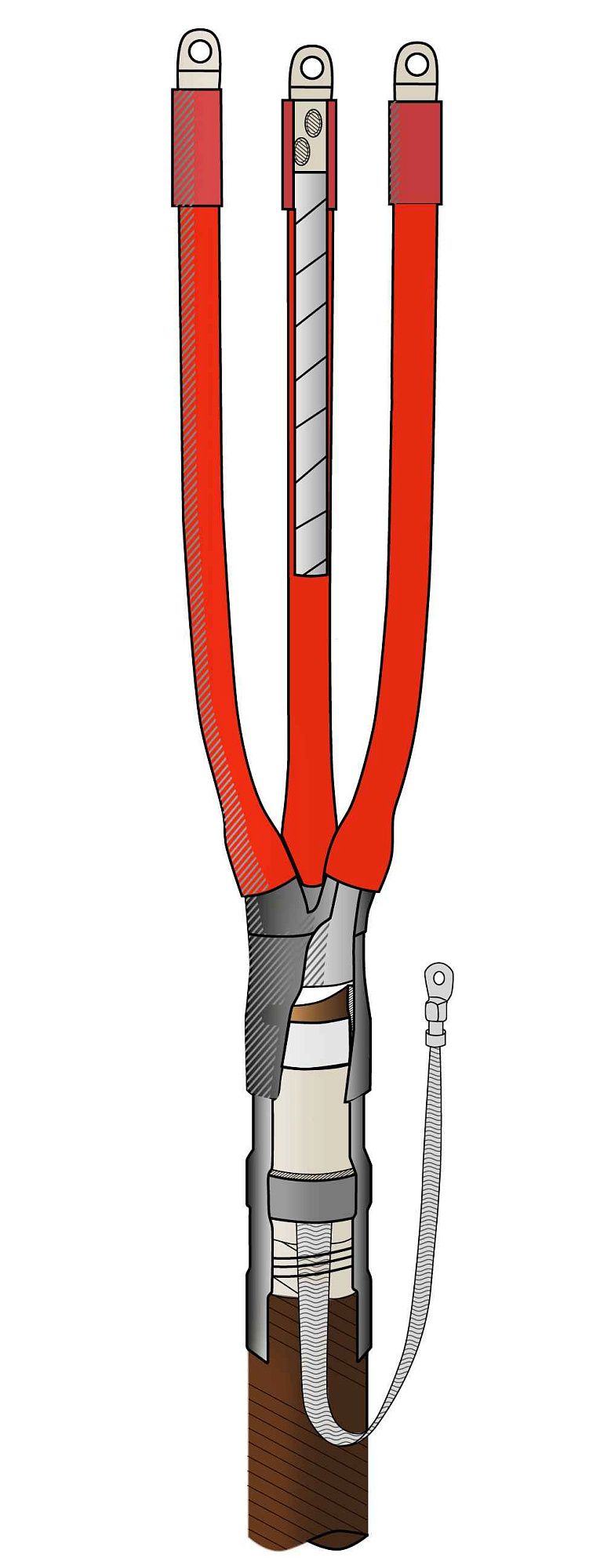 Муфта термоусаживаемая концевая внутренней установки для кабеля с бумажной изоляцией на напряжение до 10 кВ включительно с непаянным заземлением 3КВТпН-10-150...240 (с наконечниками)