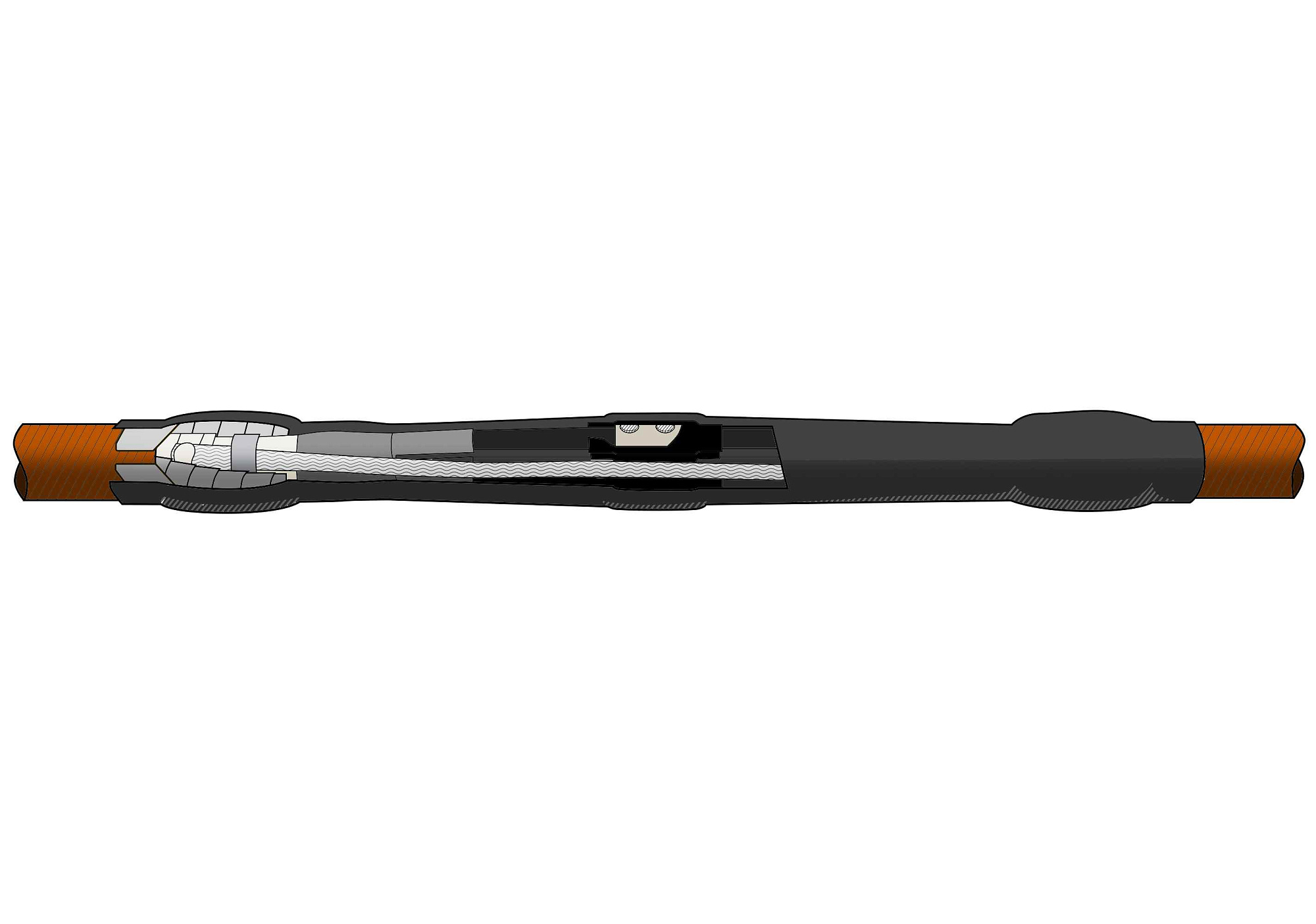 Муфта термоусаживаемая соединительная для кабеля с бумажной изоляцией на напряжение до 1 кВ включительно с не паяным (оболочка) и паяным (броня) заземлением 4СТп-1-150...240